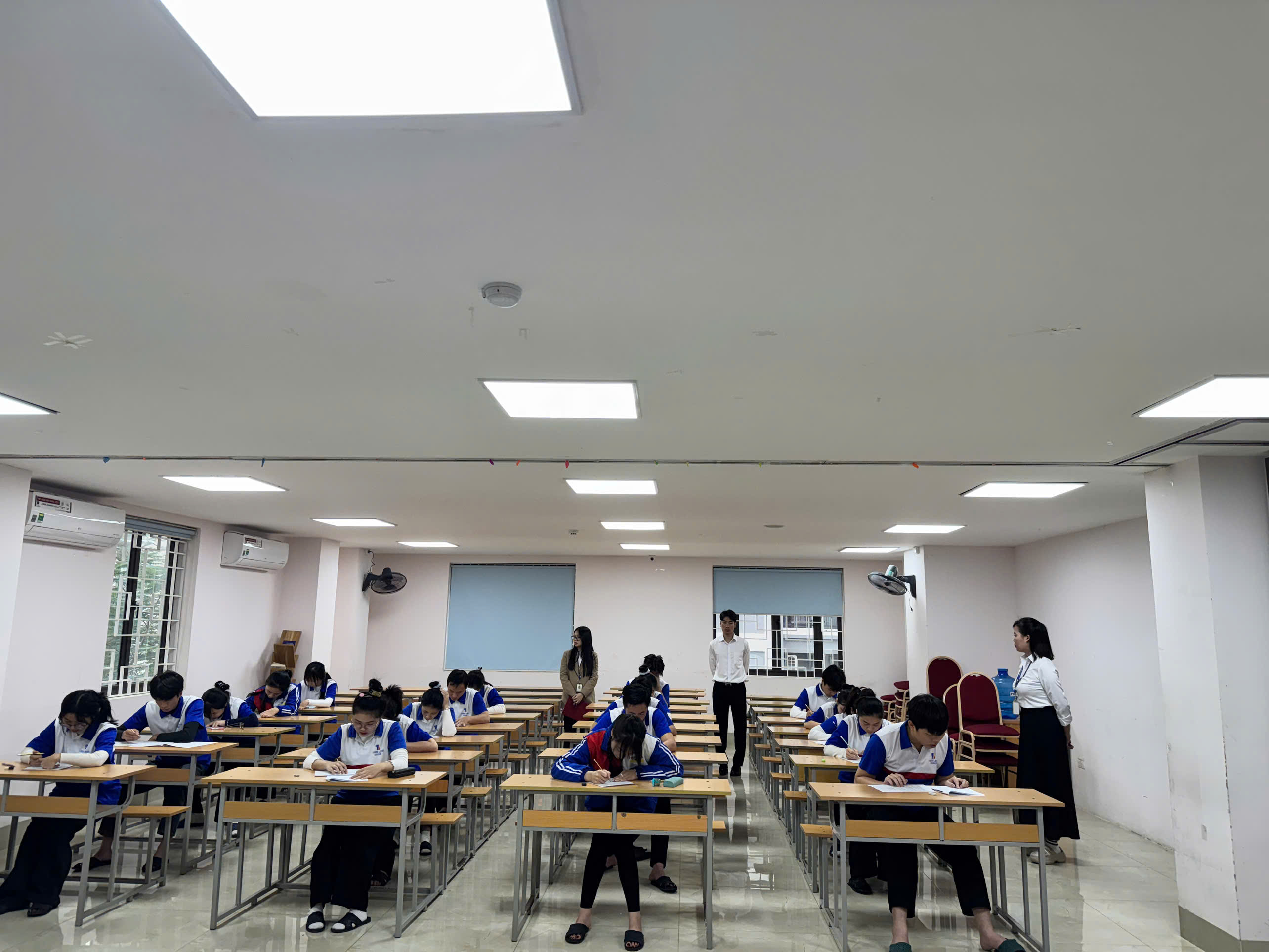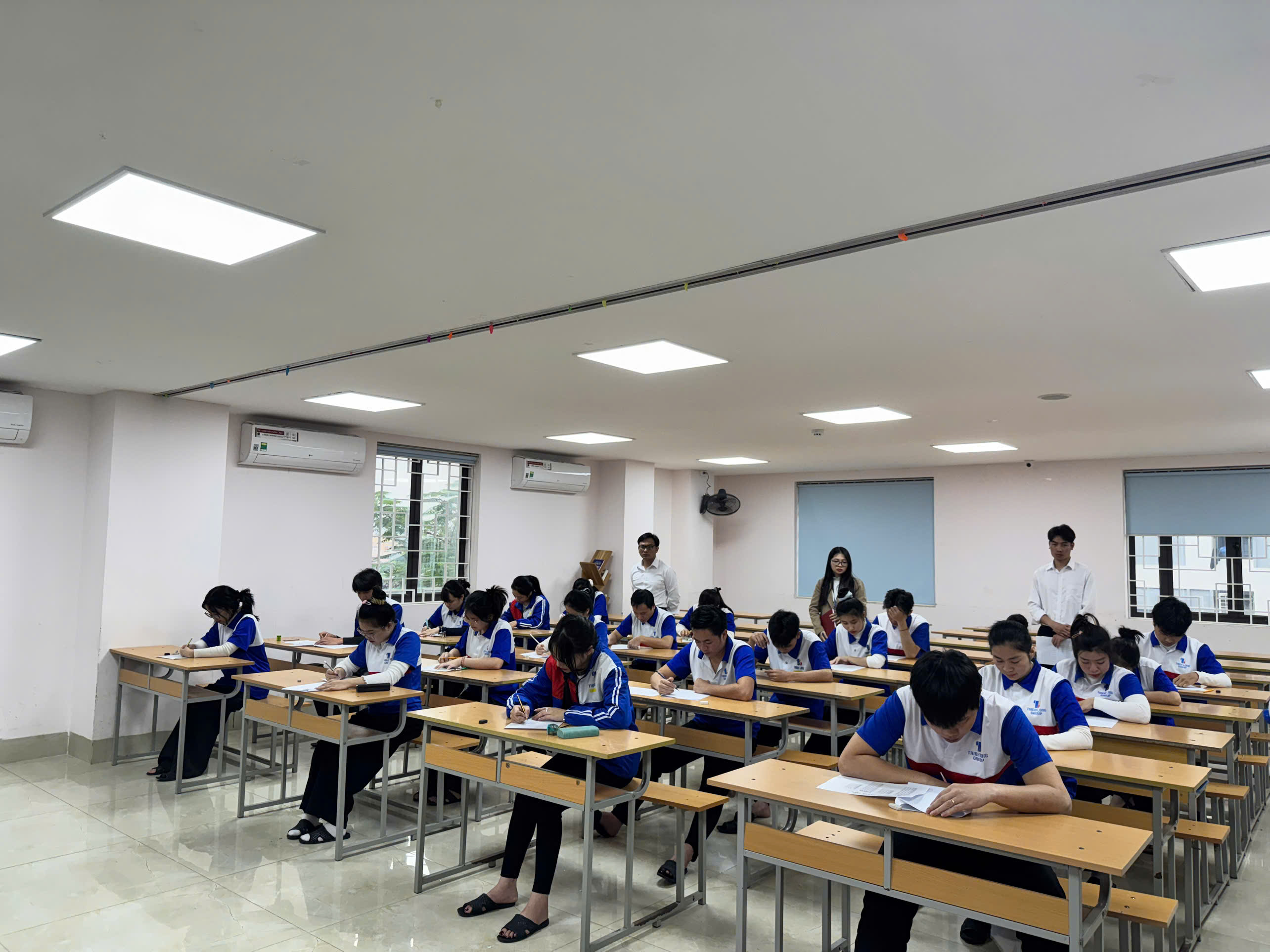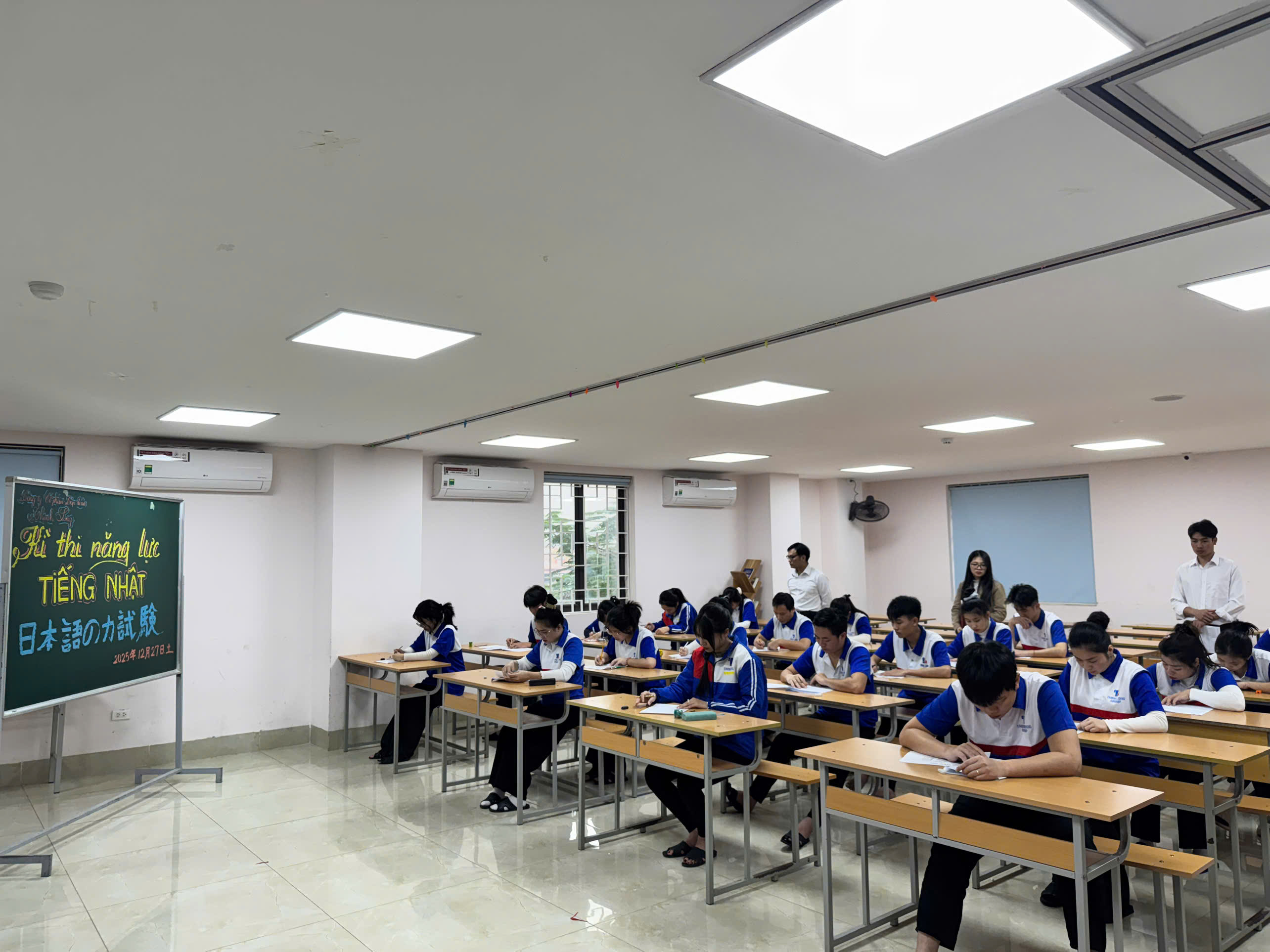 - “Level” tập trung 100%: Bình thường trên lớp hay đùa vui là thế, nhưng khi vào phòng thi, bạn nào cũng cực kỳ nghiêm túc. Từng trang giấy lật, từng nét chữ Kanji đều được các bạn chăm chút kỹ lưỡng.
